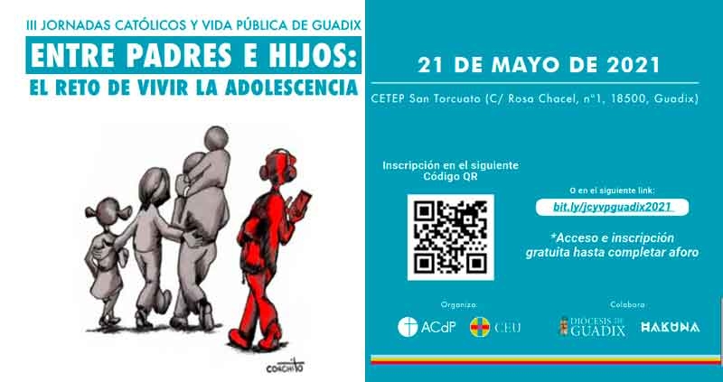 El viernes 21 de mayo se celebran en Guadix las III Jornadas Católicos y Vida Pública con un tema que puede interesar mucho a los padres con hijos adolescentes y a los hijos con padres que no les comprenden.