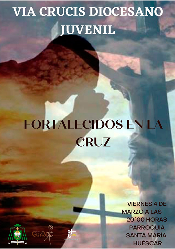 Este viernes, 4 de marzo, se va a celebrar el Viacrucis Juvenil Diocesano. Este año será en Huéscar, en la parroquia de Santa María, a partir de las 8 de la tarde. Convocado y organizado por la delegación de Juventud, el Viacrucis se presenta este año con el lema Fortalecidos en la Cruz.