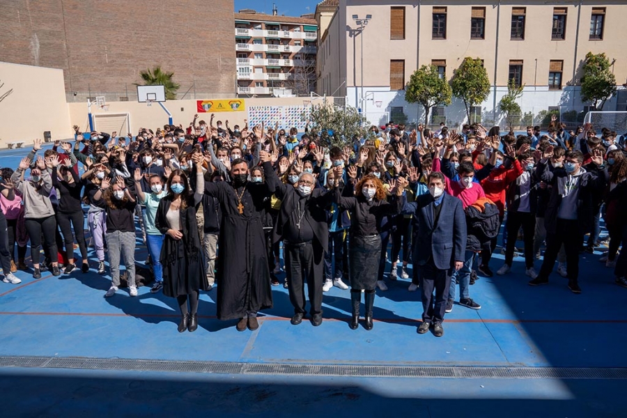 El Colegio Virgen de Gracia, convocados por Scholas Ocurrentes Granada, congregó a doscientos jóvenes para rezar por la paz y decir “no a la guerra”, en la invasión de Rusia contra Ucrania. Una oración por la paz interreligiosa, a la que, junto a nuestro arzobispo D. Javier, se unieron los representantes de la Iglesia Ortodoxa Rusa, el sacerdote de origen ucraniano D. Mihail Ustimenco, y la Iglesia Evangélica, con su Secretario en España, D. Israel Flores, y la pastor de la Iglesia Protestante en Granada, Eva Domínguez.