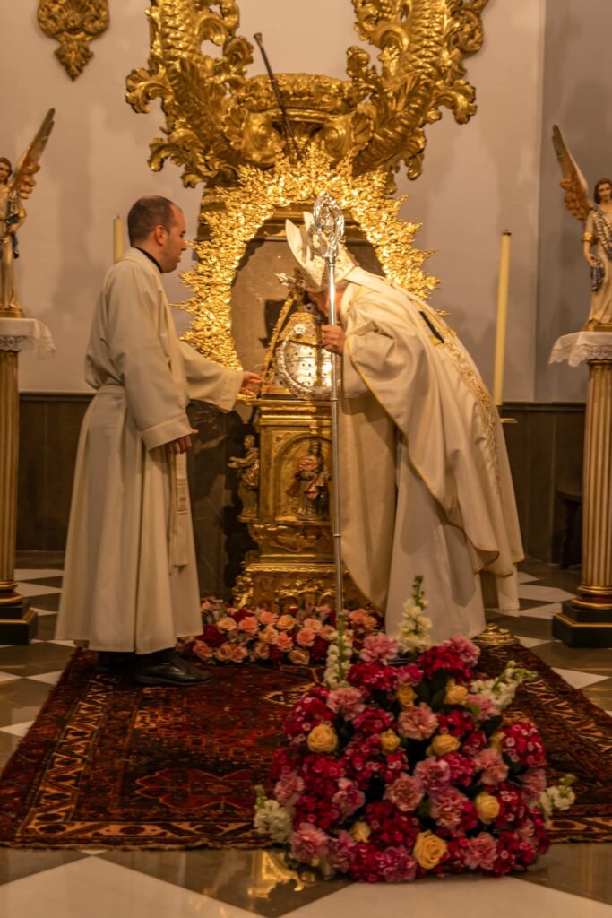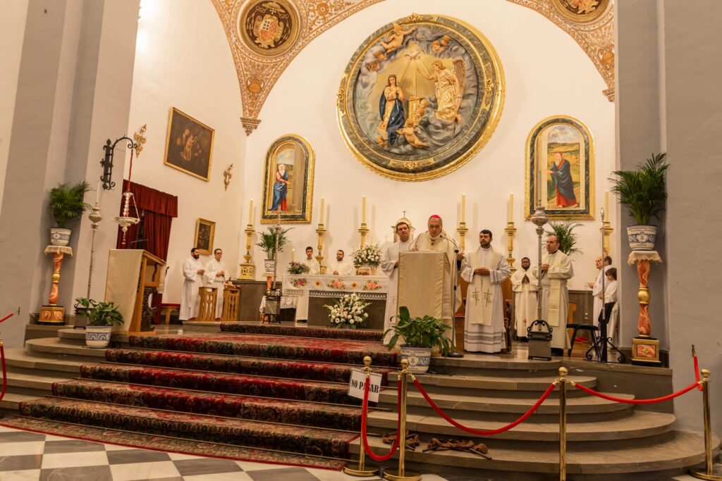 La Eucaristía fue presidida por nuestro arzobispo y concelebrada por distintos sacerdotes diocesanos, entre ellos su párroco D. Juan Antonio Arcos, el Vicario Territorial D. Alberto Sedano y otros párrocos de la costa y ciudad de Granada. También estaban los seminaristas, ya que “tenemos una relación muy estrecha con el seminario”, explica el párroco, en cuyo templo también hay un seminarista haciendo su pastoral formativa como candidato al sacerdocio.