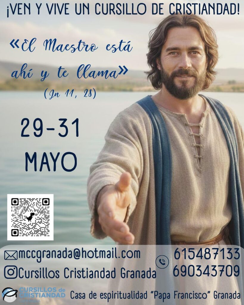 Además recordamos que el próximo Cursillo de Cristiandad se celebrará los días 29 al 31 de mayo. Las personas interesadas pueden obtener más información a través del número de contacto indicado o consultando el contenido del cartel.