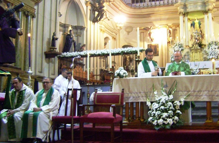 La Eucaristía fue concelebrada, por los dos nuevos responsables de la parroquia y por otros dos sacerdotes diocesanos, D. José Antonio Cantos, párroco de la Inmaculada Niña y D. José Gabriel Martín Rodríguez, delegado episcopal de Pastoral de la Salud y vicario parroquial de Santa Micaela.