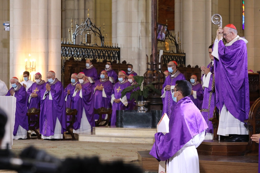 “Nos hemos reunido en esta celebración de la Eucaristía para orar por nuestros hermanos que han fallecido con motivo de la pandemia del COVID-19, que aún estamos sufriendo y que asola a todos los pueblos de la tierra. Esta noche decimos con el salmista: ‘Desde lo hondo a ti grito, Señor’, con el deseo de que Tú ilumines todo lo que estamos viviendo”, señaló Mons. Osoro en su homilía