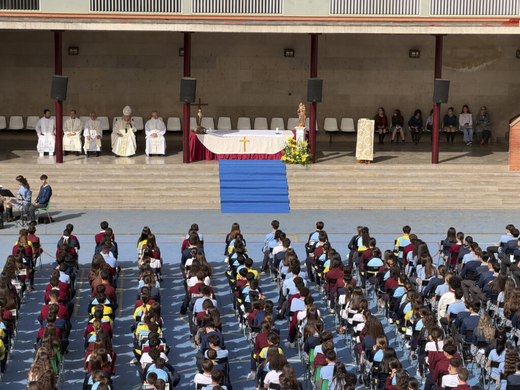 En el patio central del colegio, se detuvieron los juegos y las pelotas y se convirtió en un templo al aire libre para la celebración de la Eucaristía, en la que participaron alumnos, profesores, personal del centro y algunas familias.