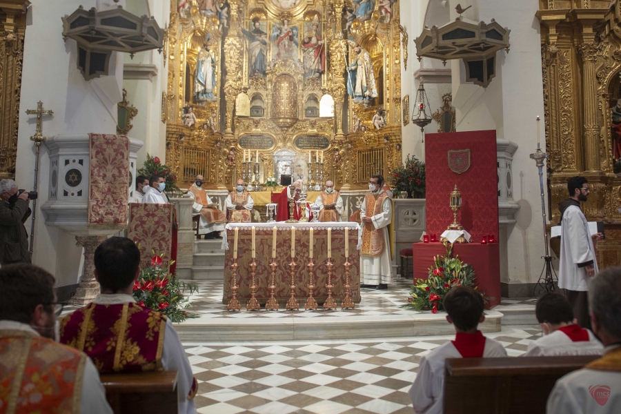 La Eucaristía por el rito hispano-mozárabe estuvo presidida por nuestro Arzobispo, Mons. Javier Martínez, y concelebrada por el Cabildo sacromontano. Entre los presentes se encontraban los seminaristas del Seminario Mayor San Cecilio acompañados por sus rectores y otros miembros del clero granadino.