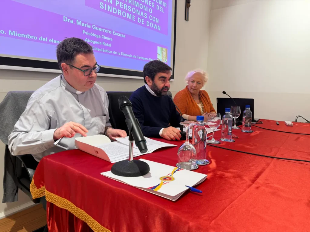 “Son unas jornadas interesantes para formarnos y también para compartir experiencias que nos enriquecen mucho”, señaló el vicario judicial de la Diócesis de Cartagena, Gil Sáez Martínez. Las jornadas de trabajo se inauguraron con una ponencia de la presidente del Teléfono de la Esperanza en Murcia y doctora en Psicología, María Guerrero Escusa, que habló sobre la “discreción de juicio y capacidad para asumir las obligaciones en personas con Síndrome de Down”.