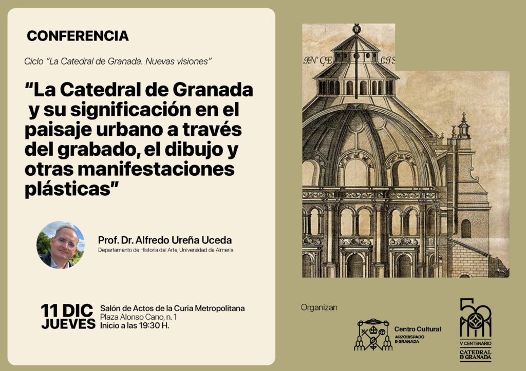 Dentro del Ciclo “La Catedral de Granada. Nuevas visiones”, el jueves día 11 la Curia Metropolitana (Plaza Alonso Cano) acoge la conferencia “La Catedral de Granada y su significación en el paisaje urbano a través del grabado, el dibujo y otras manifestaciones plásticas”.