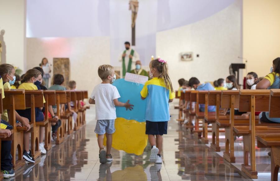 Los chicos, que ya comenzaron el curso el pasado 10 de septiembre, entregaron durante la ofrenda una cartulina con los nombres de los alumnos y profesores de este centro concertado.