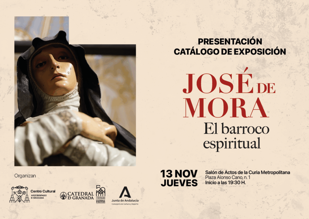El jueves día 13, a las 19:30 horas, se presenta en la sede del Arzobispado, en la Curia Metropolitana (Plaza Alonso Cano), el Catálogo de la Exposición “José de Mora. El barroco espiritual”, inaugurado el pasado 26 de septiembre, con distintas autoridades eclesiásticas y políticas de la ciudad y región. Entre otras autoridades, la Exposición, que está ubicada en la girola de la catedral, fue inaugurada por nuestro arzobispo, Mons. José María Gil Tamayo, y la consejera de Cultura y Deporte de la Junta de Andalucía, Patricia del Pozo.