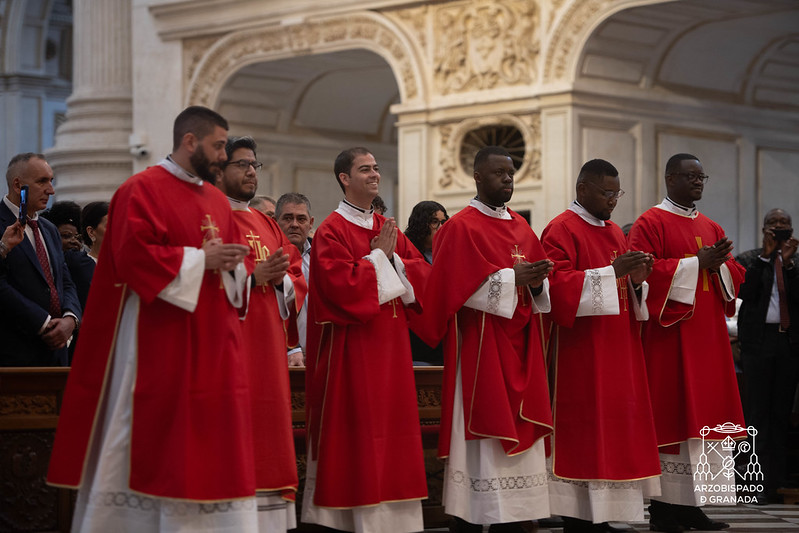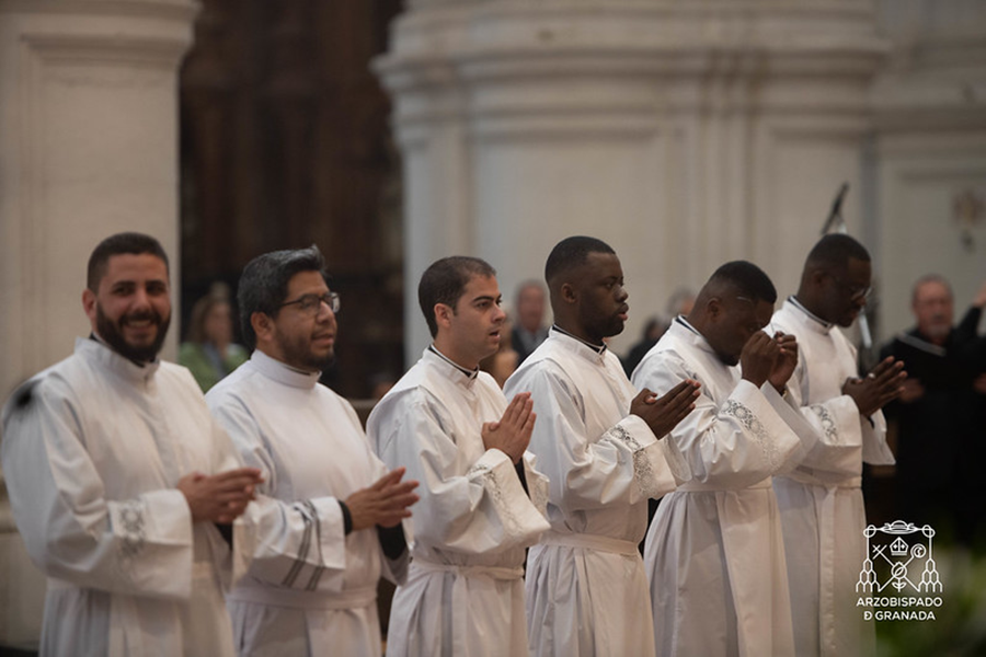 Los nuevos diáconos proceden del Seminario Mayor San Cecilio -Aarón García Gutiérrez, Antonio José Marfil García, Chan-Chan Mawene Gloria, Egrel Prince Lady Mvouvou y Krishna Pascal-Girod- y del Misionero Redemptoris Mater -Venancio Limón Rosas-.