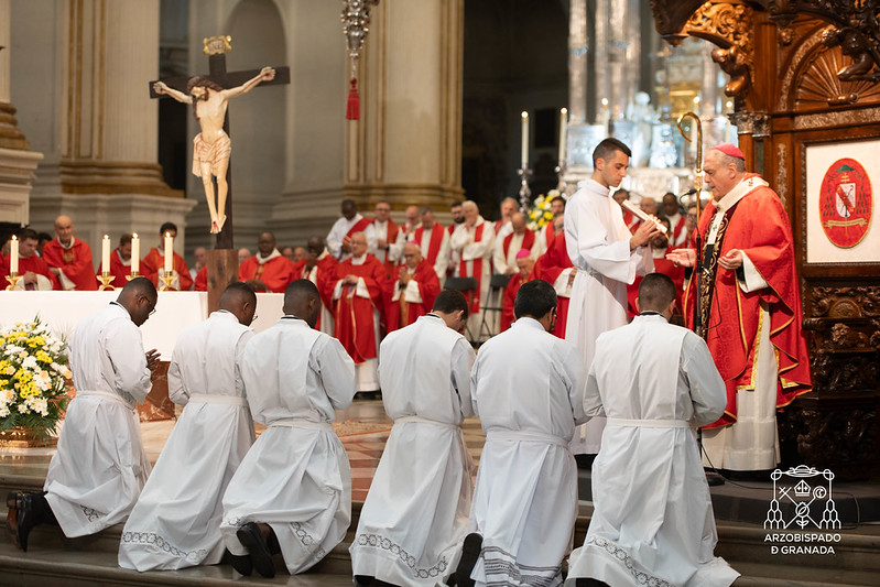 Procedentes de los Seminarios Mayor San Cecilio y Misionero Redemptoris Mater, les ha sido conferido este Orden como candidatos al sacerdocio de manos del arzobispo Mons. José María Gil Tamayo, y concelebrada por los arzobispos emérito de Granada y emérito de Point-Noire, diócesis congoleña de donde proceden tres de los nuevos diáconos.