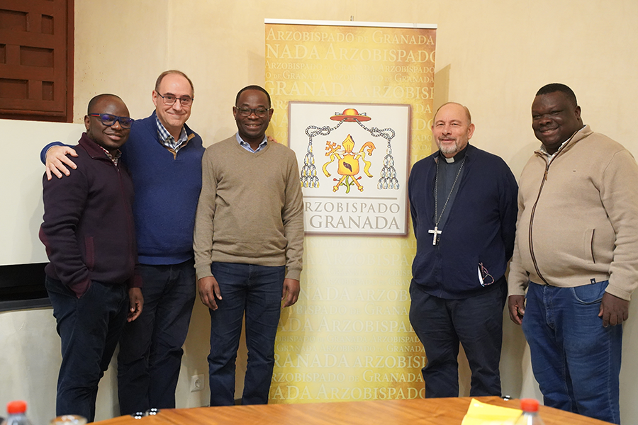 El Departamento de Medios de Comunicación Social del Arzobispado de Granada entrevistó al Dr. Cédric en la Curia Metropolitana, donde estuvo acompañado por otros sacerdotes misioneros combonianos, entre ellos el obispo de Mbaiki (República Centroafricana), Mons. Jesús Ruiz, y D. Enrique Bayo, que ayudó en la traducción.