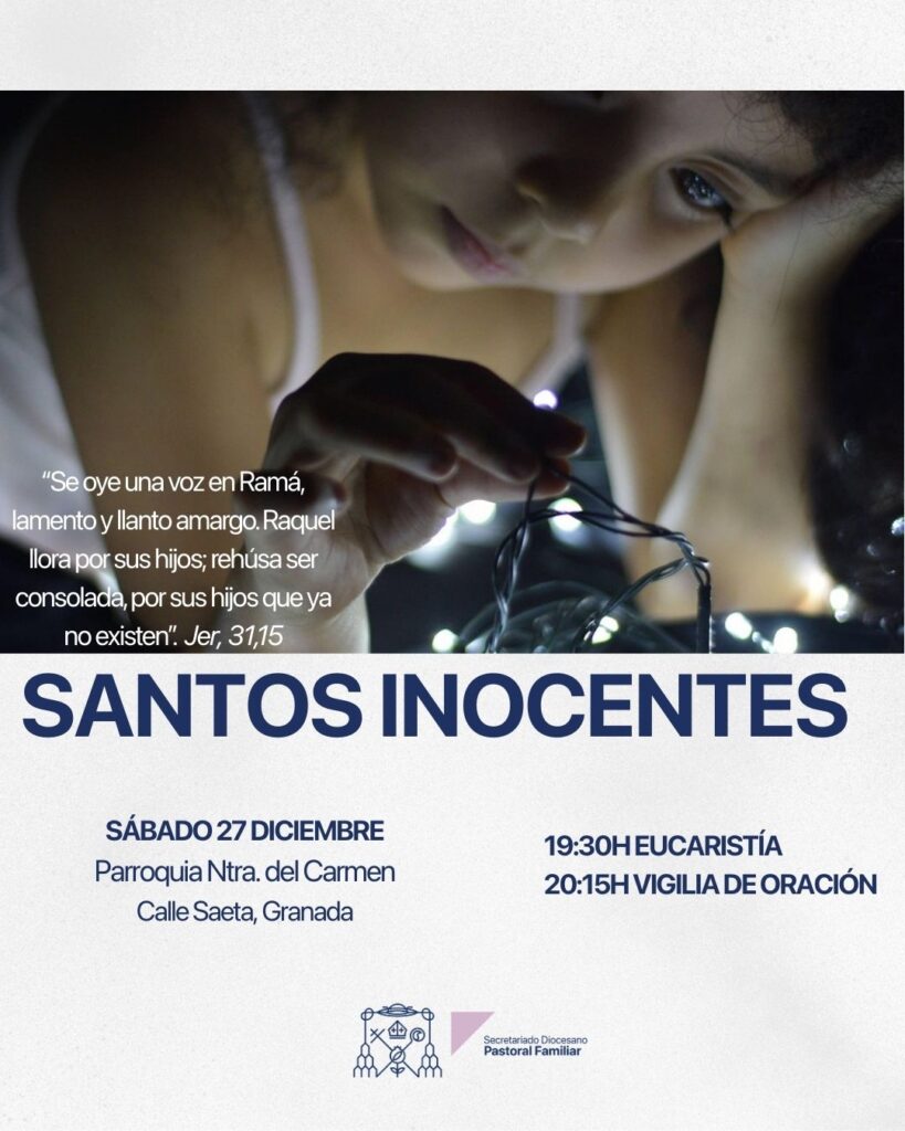 Con motivo de esta conmemoración, la Pastoral diocesana de familia y vida celebra una vigilia de oración con esta intención, que tendrá lugar el 27 de diciembre, a las 20:15 horas, en la parroquia de Nuestra Señora del Carmen (C/ Saeta, en Granada). Previamente, se celebrará la Eucaristía, a las 19:30 horas.