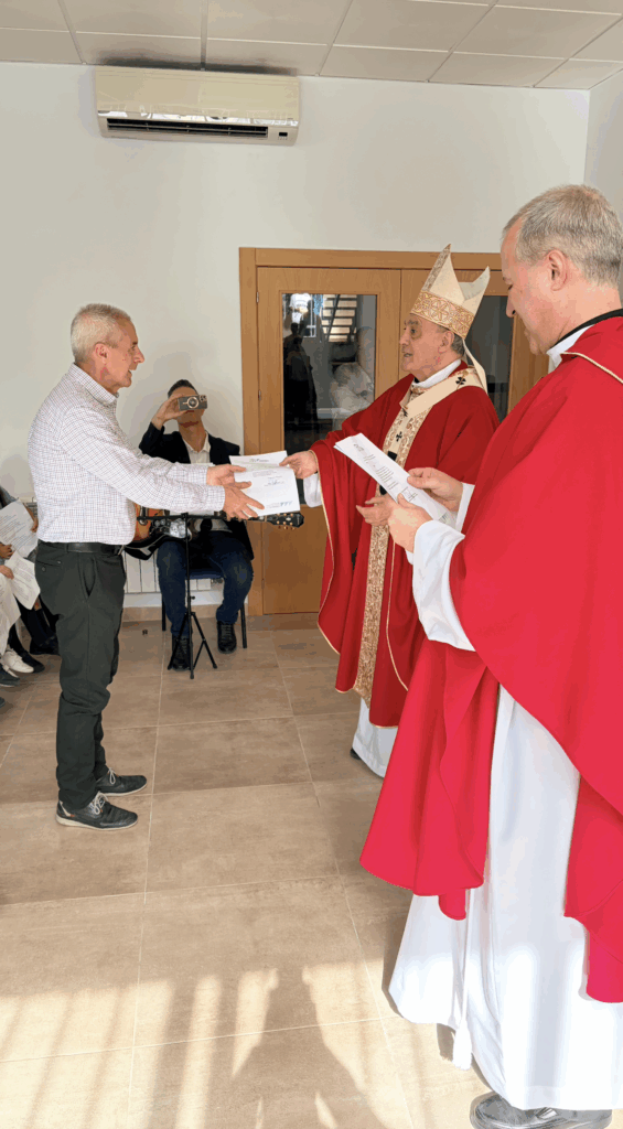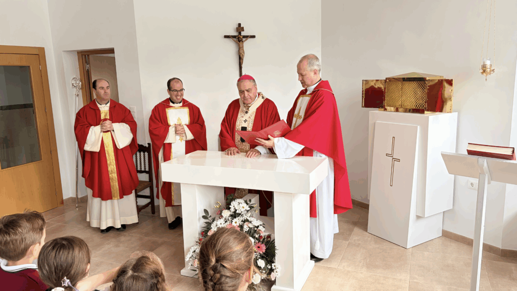 A continuación, tuvo lugar la bendición e inauguración de la nueva capilla del colegio, concebida como el espacio espiritual central del centro educativo. En la celebración de la Eucaristía, el arzobispo subrayó que en la capilla “está Jesús, que nos espera para visitarlo y escucharlo”, e invitó a los presentes a mantener una actitud de fe y cercanía con Dios. Durante su homilía, explicó de manera sencilla el significado de los signos episcopales, animando a los niños a seguir el ejemplo de Cristo en su vida cotidiana.