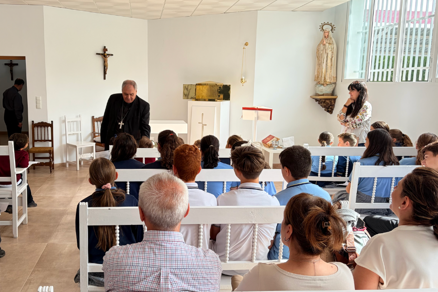 El pasado martes, el arzobispo de Granada, Mons. José María Gil Tamayo, visitó el Colegio Diocesano Virgen del Espino, en la localidad de Chauchina. La jornada se desarrolló en un ambiente de cercanía y diálogo, bajo el lema evangélico “Dejad que los niños se acerquen a mí” (Mc 10, 13-16).