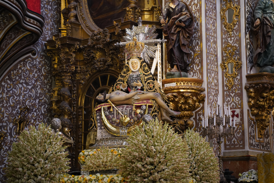 Fe. Fe para ver nuestra vida, ver a Dios, ver a los demás con los ojos de Dios. Esperanza. No podemos perder la esperanza, no vivamos sólo de tejas para abajo. La muerte no es el final. La Virgen de las Angustias está anunciando ya la Resurrección de Cristo. El que tiene delante de sí es el que ha resucitado, es el Señor, el vencedor del pecado y de la muerte, nuestra esperanza.